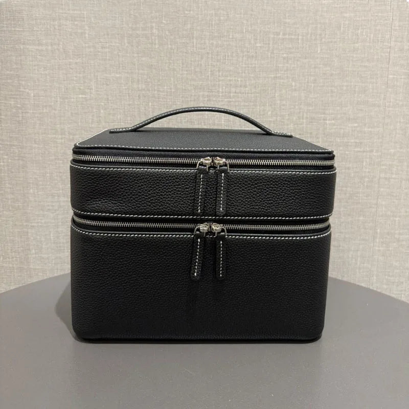Its large-capacity interior provides ample space for cosmetics, skincare, brushes, perfumes, and grooming tools. Multiple partitions and compartments make it easy to arrange your essentials, while the secure zipper closure ensures everything stays in place. Versatile in design, this elegant bag also doubles as a travel jewelry organizer, keeping your necklaces, rings, bracelets, and earrings safe and tangle-free.